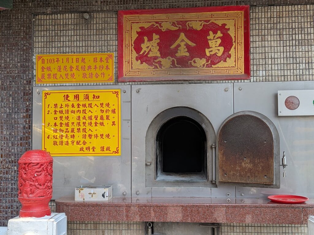道教では、この黄色い紙に自分の名前とお願いごとを書いて、その書いたことが神様に伝わるように最後は専用の焼却炉で燃やすことで神様に届けるという文化があるそうです。