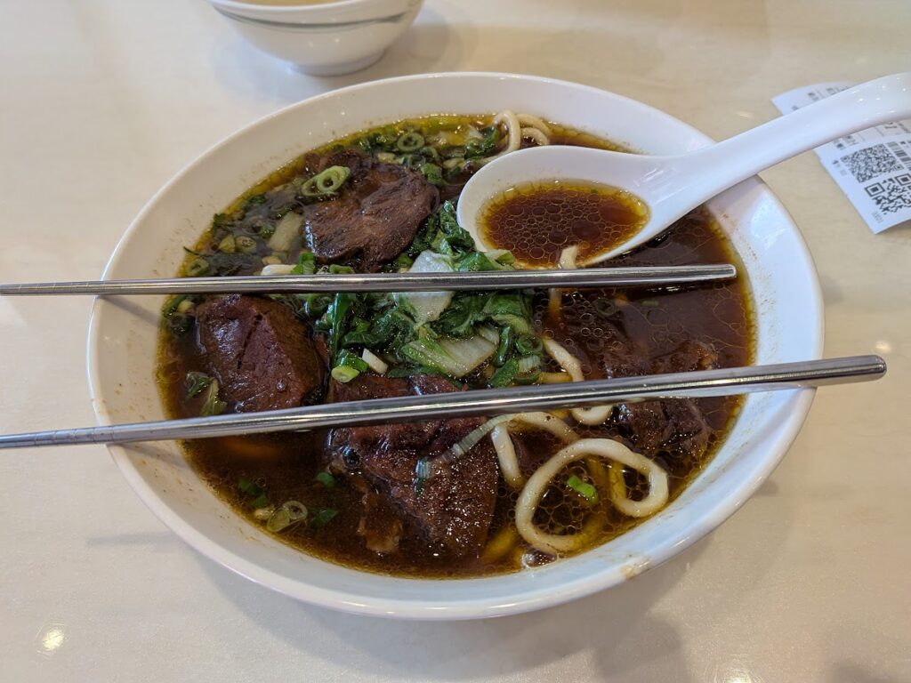 この日は、まず11時に台湾名物の牛肉麵(ニューローメン)をいただきました。