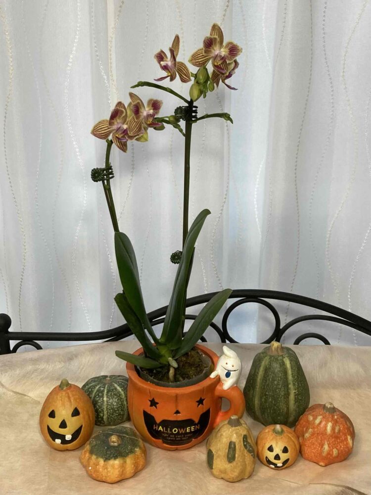 ※学名、英名とも「蛾のような蘭」という意味⇒原種の花は白い物が少なく、茶色がかった色のため蛾が羽を広げているように見えた事からきているそうです。