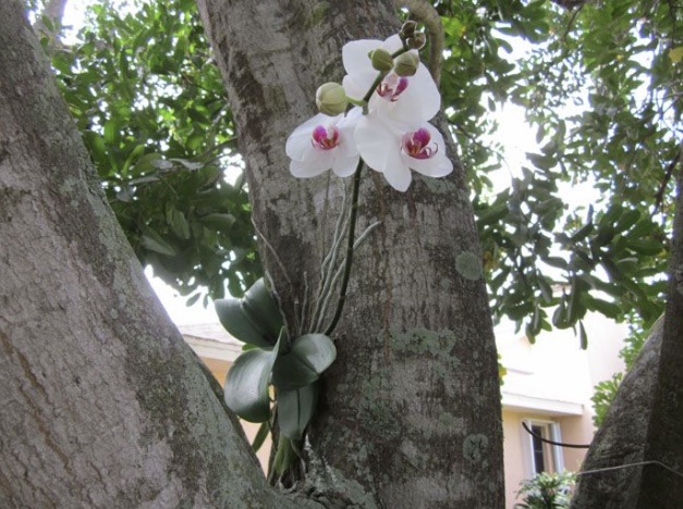 特 徴:着生(ちゃくせい)植物⇒大きな木や岩に張り付き、木陰から差し込む日光を栄養に、空中に伸ばした根から取り込んだ少ない水分で生きることができます。