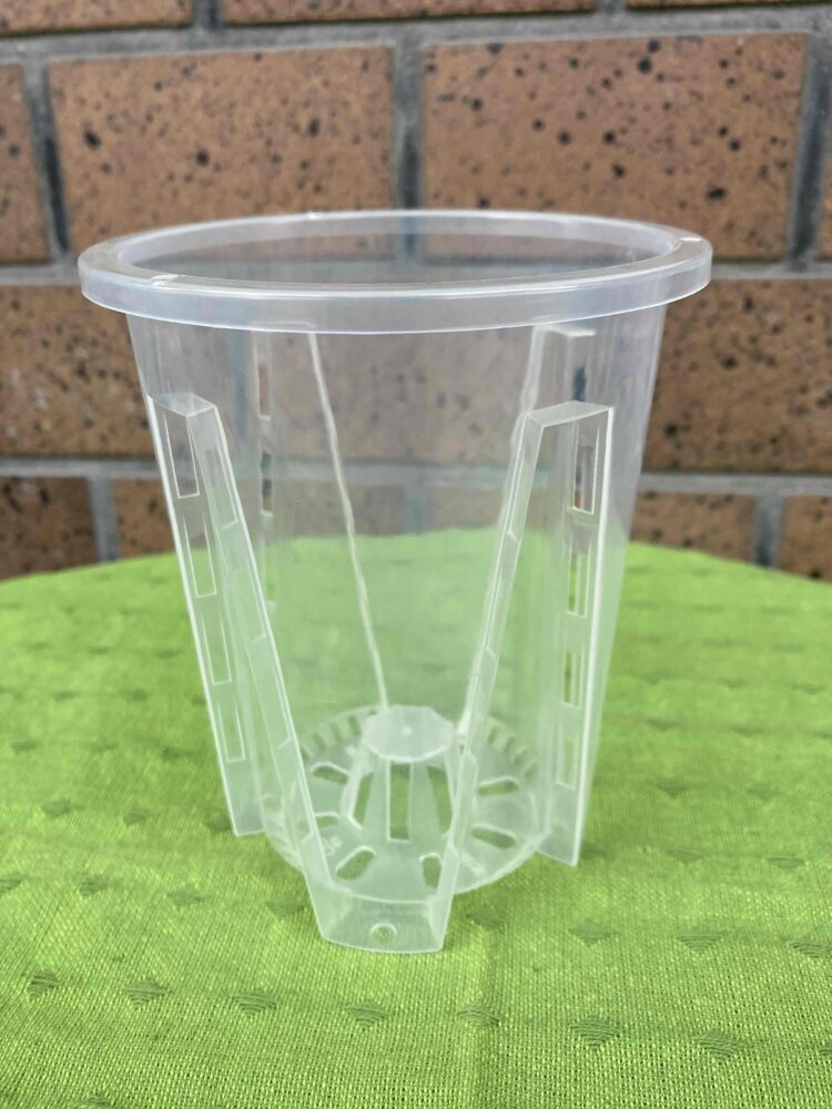 透明ポットのメリットは、植え込み材の湿り具合が見えるので水の管理がしやすくなり、根の成長を楽しむ事もできます。