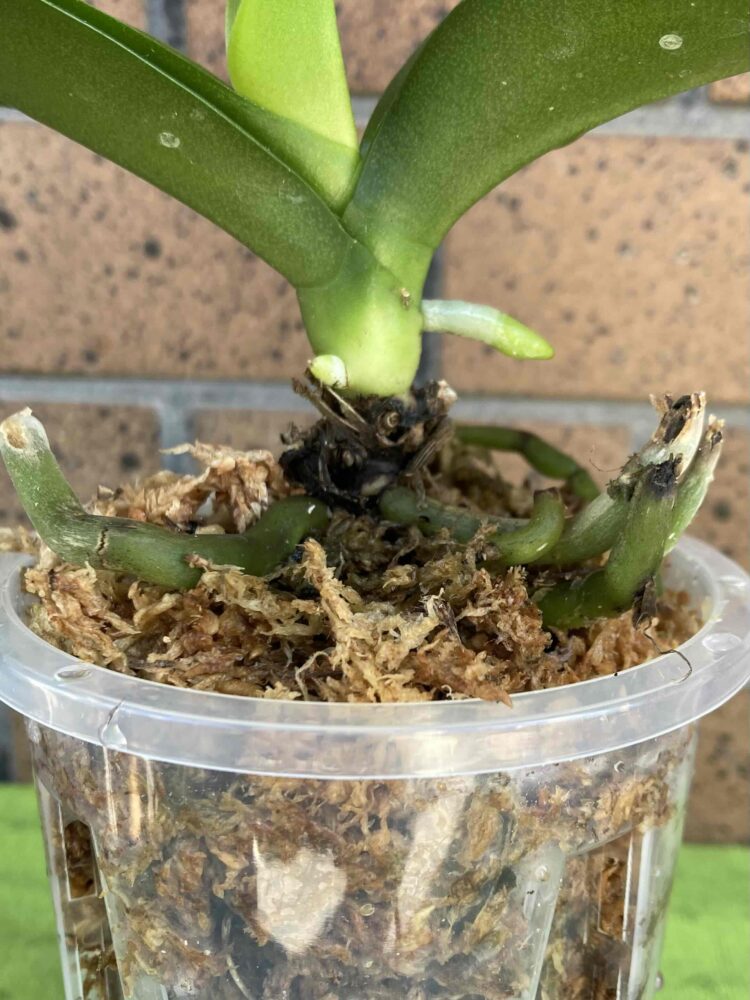 (コチョウランは株の中心部から新しい葉が展開する単茎種で株は増えないので鉢を大きくする必要は有りません。)